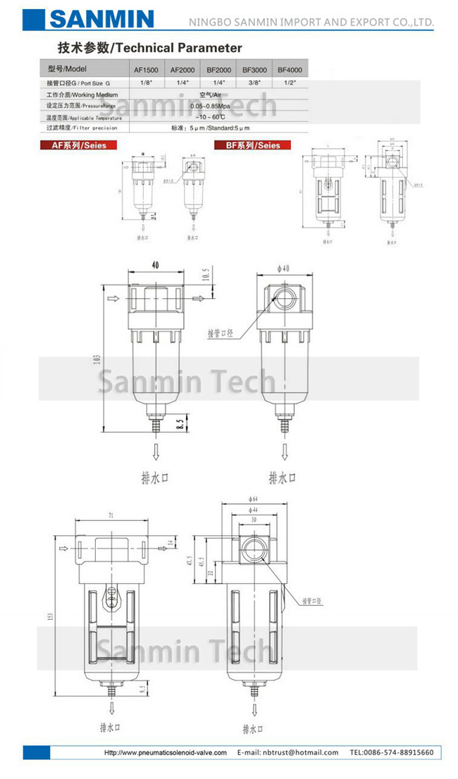 AF2000 BF2000 Filtr Typ urządzenia AirTAC Typ źródła powietrza AitTac Typ FRL Jednostki Części sprężarki powietrza Sanmin